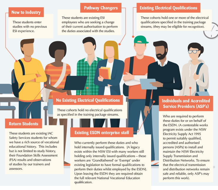 These cohorts hold one or more of the electrical qualifications specified in the training package streams, (they may be eligible for recognition).