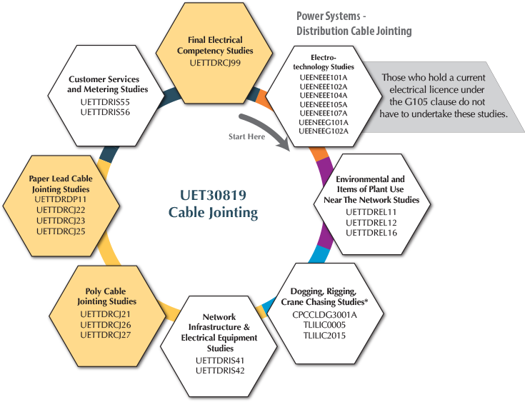 Class 1B – carry out work on or near the underground electricity network including both paperlead and polymeric and associated underground asset installation works UET30819 – Certificate III in ESI – Power Systems – Distribution Cable Jointing